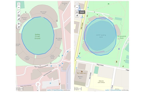 Compare the size of two locations around the world.